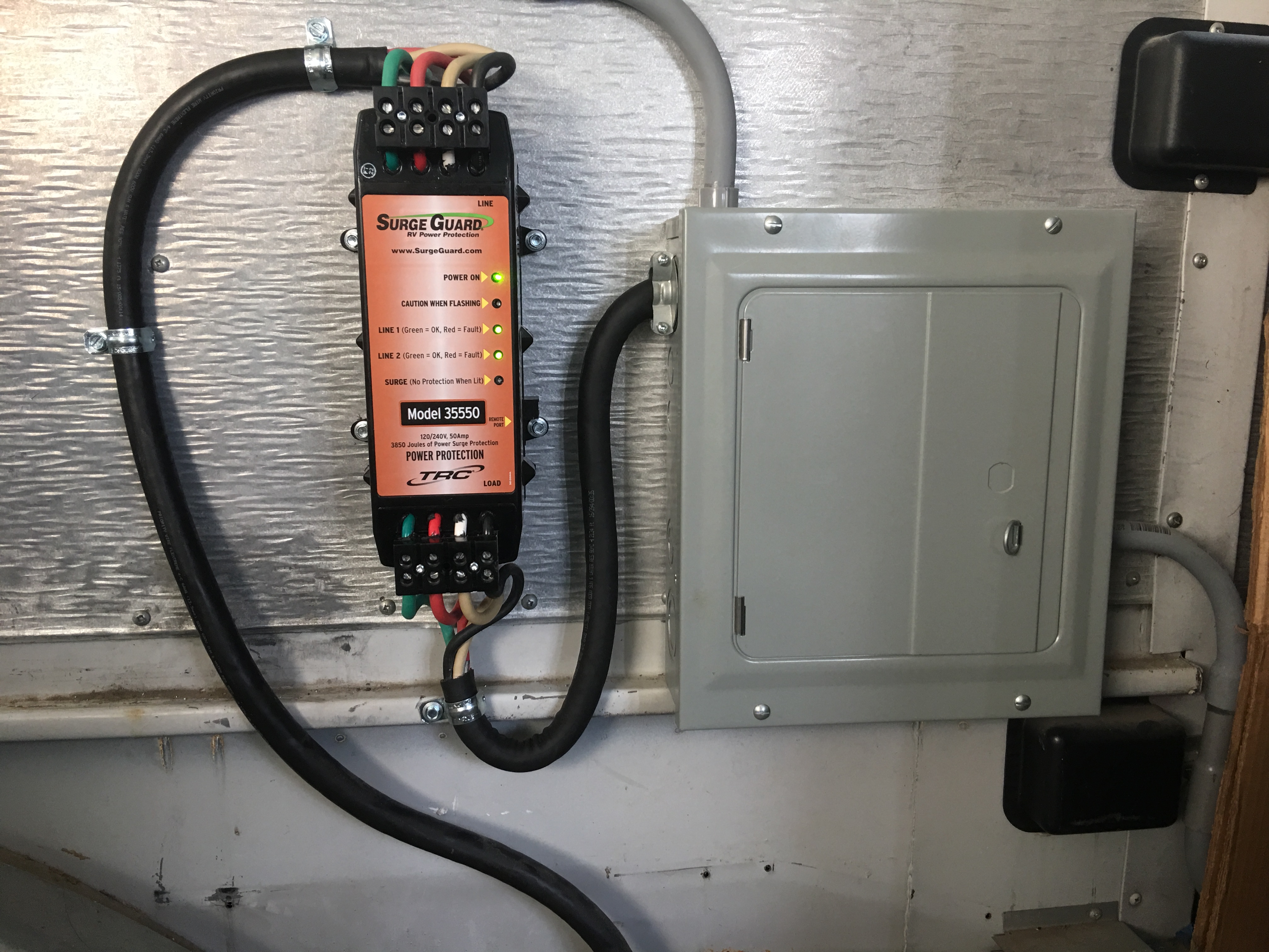 I added a hardwired 50amp surge guard power protection from TRC to my caravan.